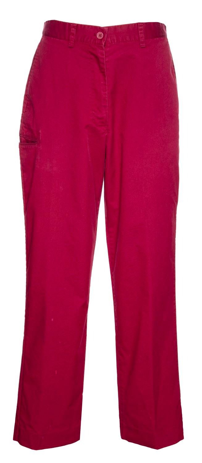 (Walt Disney World, 2000s) A pair of Walt Disney World Guest Services Custodial pants. The red pants measure a Female size 14” x 32” and are in very good Park-used condition with stains and light wear from Park use.