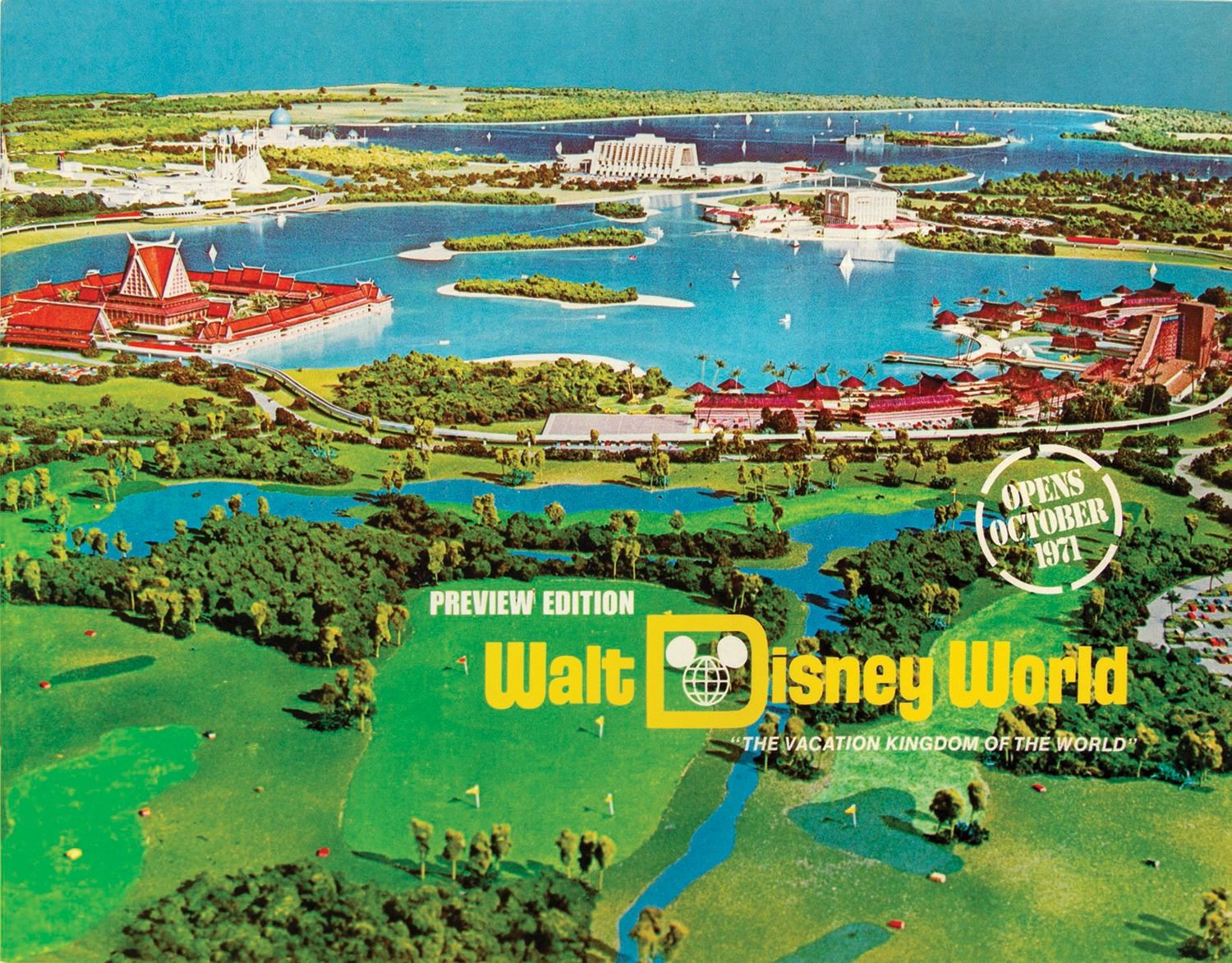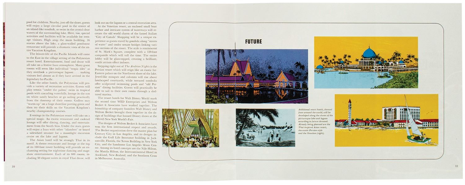 (Walt Disney World, 1970) A pre-opening guide to Walt Disney World Resort and theme park featuring concept art and behind-the-scenes photos of the attractions that would be opening the following year. This 20-page booklet measures 8.5"x11" and is in very fine condition with minimal wear.