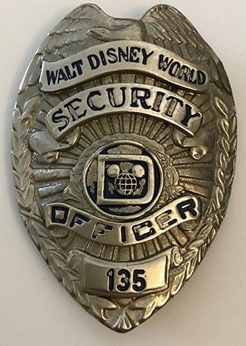 (Walt Disney World, c. 1970's-80's). A vintage Walt Disney World security badge. The badge is in good condition with normal wear from age and park use. Item comes with a Grand Circle Tour Auctions COA.
