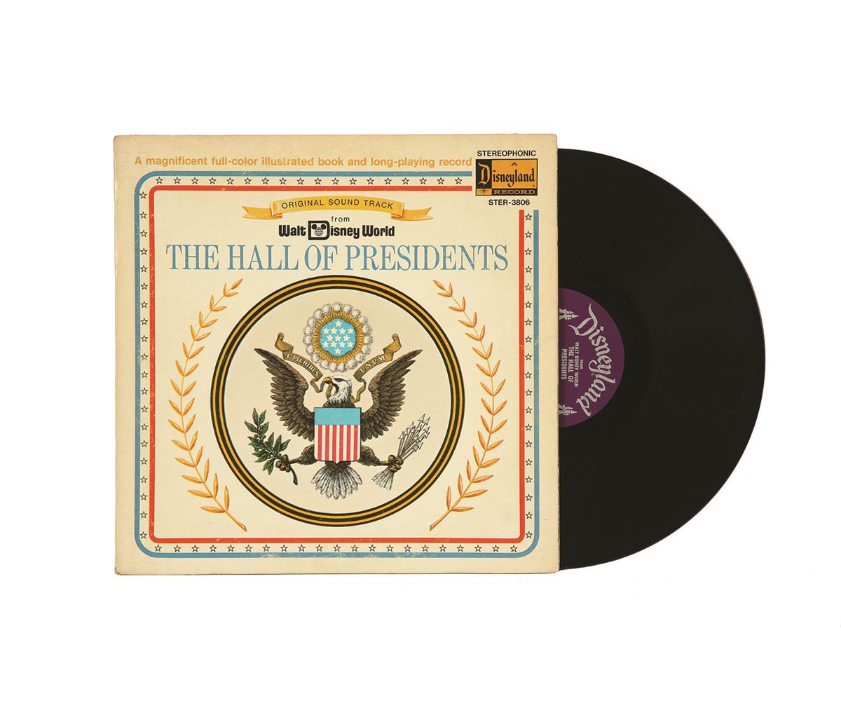 (Walt Disney World, 1972) This album features an (11) page full-color photo and story guide that lets the reader experience the excitement of The Hall of Presidents in the comfort of their own home. With this book and record, you can both see and hear your way through the well-loved attraction. Album cover is in good condition with some edge wear. Vinyl is in very good condition.