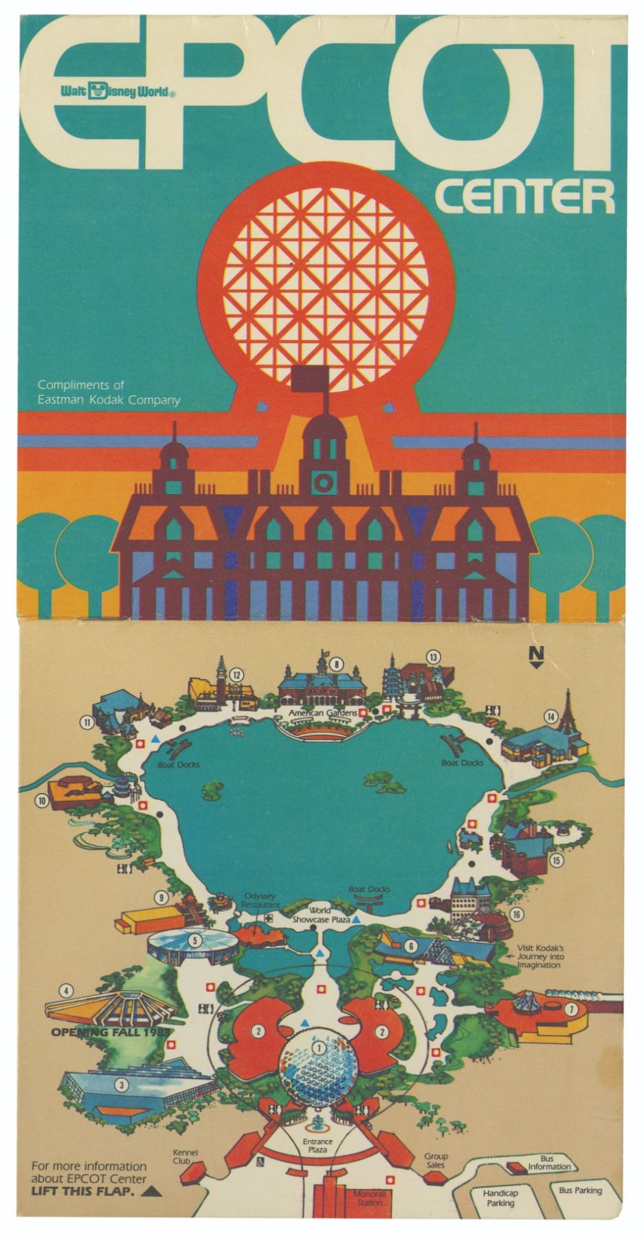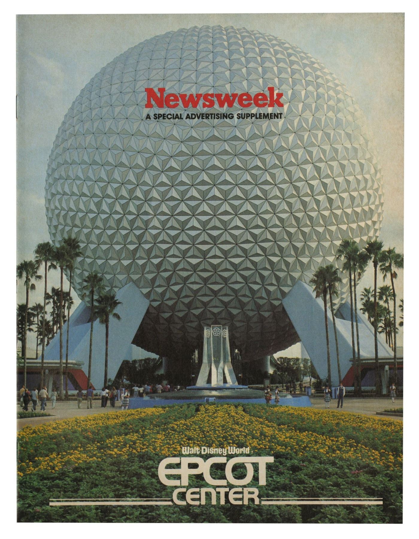 (Walt Disney World, 1982) A welcome packet from Walt Disney World with brochures and materials from the Magic Kingdom and Epcot. This packet contains one issue of Newsweek magazine, one issue of Vacation Guide magazine, a small guide to the Magic Kingdom, and a guide to Epcot by Kodak. The outer folder measures 11.75"x9.5" and has some small areas of wear and discoloration from use, however, the materials inside are in very good condition.