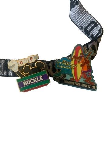 A collectors dream of six Walt Disney collectible pins and a year 2000 Walt Disney World collectible pass lanyard.