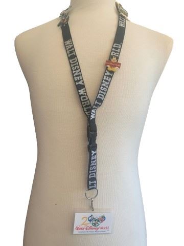 A collectors dream of six Walt Disney collectible pins and a year 2000 Walt Disney World collectible pass lanyard.