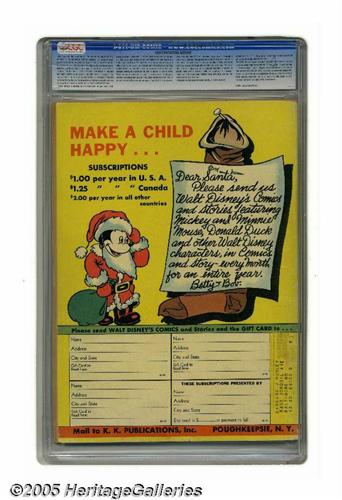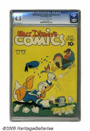 <B>Walt Disney's Comics and Stories #2 (Dell, 1942) CGC VG+ 4.5 Cream to off-white pages.</B></I> While we've got just about everything a Dell fan can dream of in this auction, this book stands as one of the highlights. We see this issue, which features Donald Duck and Mickey Mouse, even less often than the sought-after #1! Overstreet 2005 VG 4.0 value = $1,142. CGC census 3/05: 1 in 4.5, 4 higher.