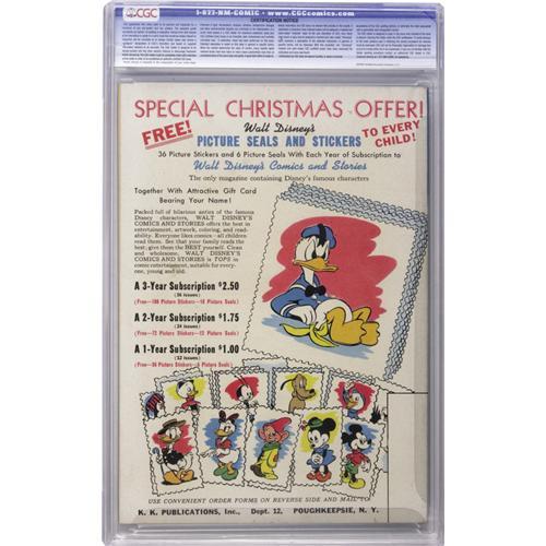 <B>Walt Disney's Comics and Stories #63 File Copy (Dell, 1945) CGC VF+ 8.5 Off-white pages.</B></I> Carl Barks art. Overstreet 2006 VF 8.0 value = $174; VF/NM 9.0 value = $275. CGC census 11/06: 1 in 8.5, none higher.<BR><BR><b>Shipping:</b> Slabbed Comic (<a target="_blank" href="http://www.heritageauctions.com/common/shipping.php">view shipping information</a>)