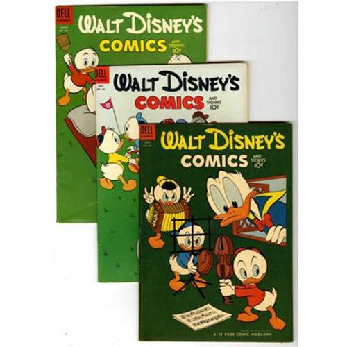 <B>Walt Disney's Comics and Stories Group (Dell, 1954-55) Condition: Average VF-.</B></I> Includes #163, 164, 167, 169, 170, 172, 173, and 175. All feature art by Carl Barks. Approximate Overstreet value for group = $300.<BR><BR><b>Shipping:</b> Comics - Unslabbed (<a target="_blank" href="http://www.heritageauctions.com/common/shipping.php">view shipping information</a>)