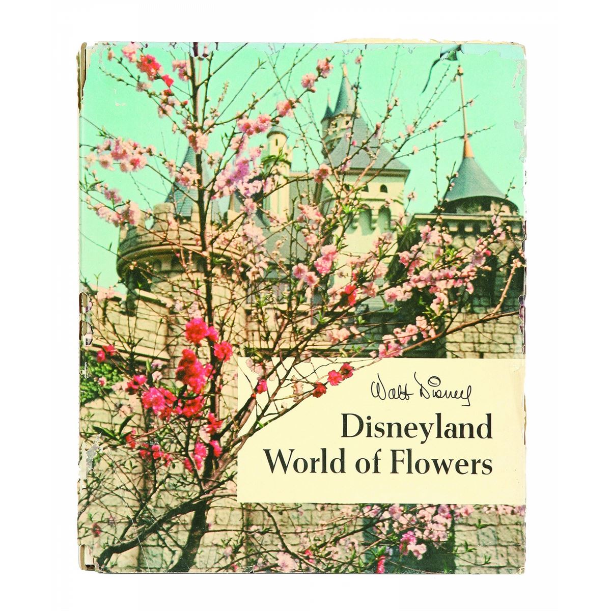 (Disneyland, 1965) An extremely rare hardback souvenir book published and sold at Disneyland. Written by famed Disney horticulturalist, Morgan “Bill” Evans. This volume was produced in 1965 only, however, it is very telling how Disney respected the work of his lead WED Imagineering Disneyland Landscape Architect. This book features terrific vintage photos of rare details of the park. Often the spines are missing from these as the binding quality was very poor, but this spine is intact, with some wear. Comes with it’s even more rare paper dust jacket. Measures 11.5"x9.5". The book is in fair to good condition with the spine still intact but starting to separate. The dust jack is in poor condition. There is a note on an interior blank page in pen, commemorating the date that the original owners went to the park and received this book.