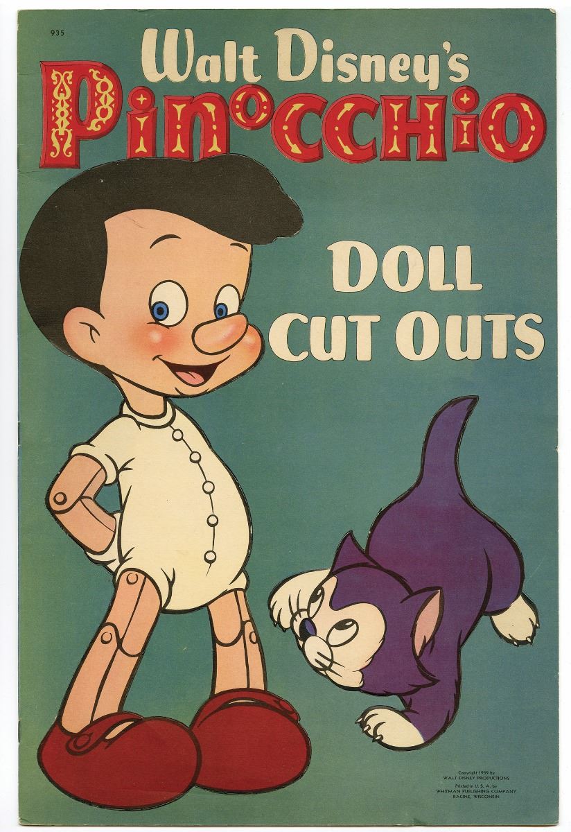(Whitman Publishing, 1939) Very large paper doll book for Pinocchio and Jiminy Cricket. Measures 11.25"x17". 8 pages of cut-outs including the covers. In fine condition, unused.