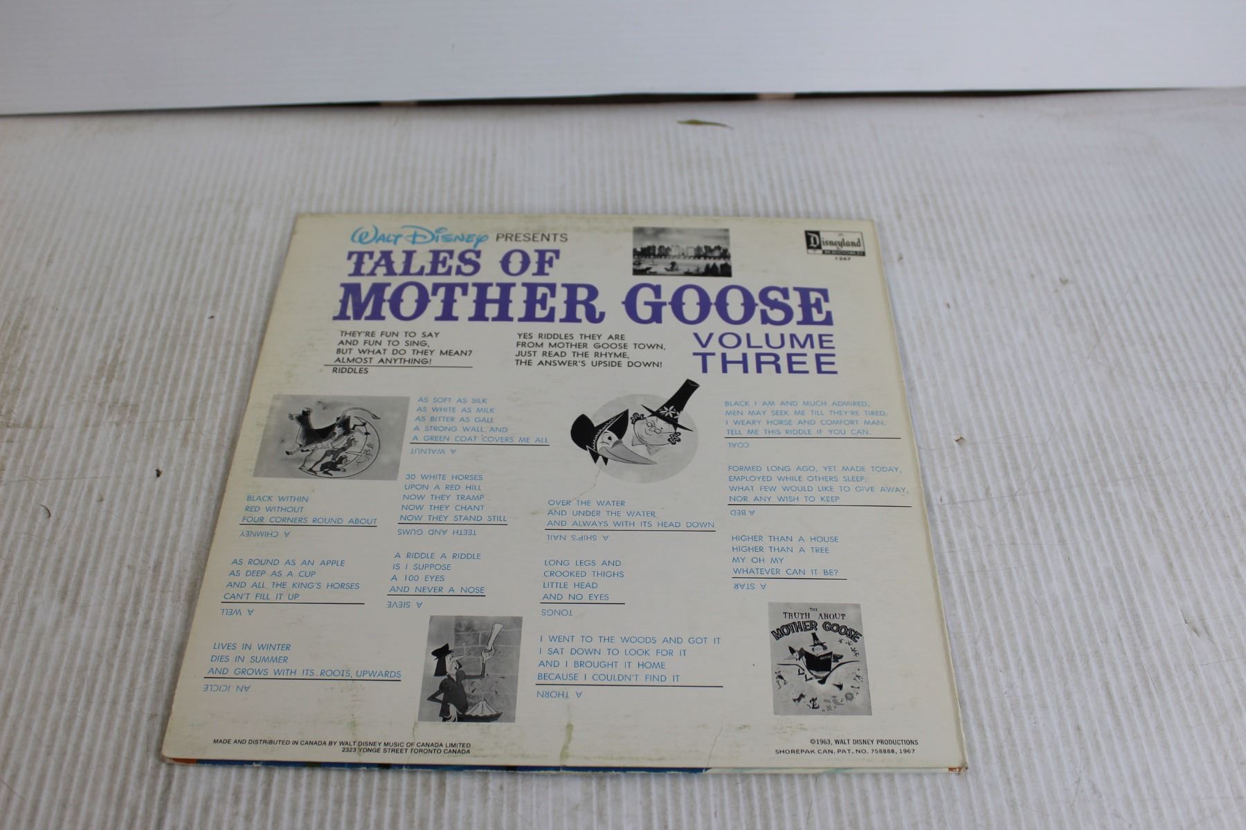 Walt-Disney's Tales of Mother Goose Volume Three Vinyl Record