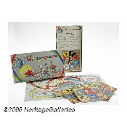 <B>Walt Disney's World of Color Board Game (Whitman, 1961).</B></I> ""Be the first player to travel all six space orbits and collect the six different colored pieces to complete a TV screen."" In great condition and never used, it contains all the original pieces. <I>From the Random House Archives.</B></I> <BR><BR><B>Important notice:</B> Heritage usually auctions material at the rate of 200-250 lots per hour. On some occasions eBay Live bid software or the Internet may not be able to keep up with the pace of the auction. We recommend placing a realistic absentee bid now as insurance to avoid disappointment. Occasionally the auctioneer may eliminate or reject an eBay Live bid, and the auctioneer may also reopen a lot after the close of the eBay live bidding (usually because we missed an audience bid), and may reject your bid even if it shows you as the winning bidder. By bidding via eBay Live, you agree that Heritage may award the lot to another bidder at its sole discretion under the circumstances described above or any other reasonable circumstances. Since eBay bids are not shown to us until we open the lot on the floor, we treat those bids just like floor bids. In most cases the floor responds before the eBay bid is presented to us, due to Internet lag time, so for consistency we have made it a policy that floor bids are always considered first over tie eBay live bids. Also please note that all Heritage lots purchased through eBay Live carry a 20% Buyer's Premium. Please make sure you read the Terms and Conditions before you bid. This lot is being auctioned in conjunction with a live floor auction by Heritage Galleries & Auctioneers. All final auction and invoice information will be supplied by Heritage Galleries & Auctioneers, and all other information should be considered preliminary. Lot:3293 <BR><BR><B>Winning Notification and Billing:</B> After the FINAL session in this auction is complete, Heritage will send e-mail and snail mail invoices. This process norm