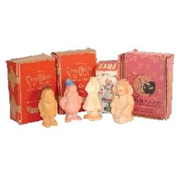 Walt Disney soap figures (4) in original boxes; 2 dwarfs-Happy & Sleepy, Ferdinand the Bull & Alice