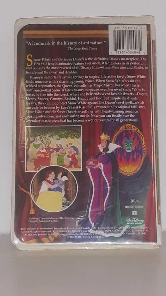 Walt Disney vintage Masterpiece Snow White and the Seven Dwarfs VHS movie