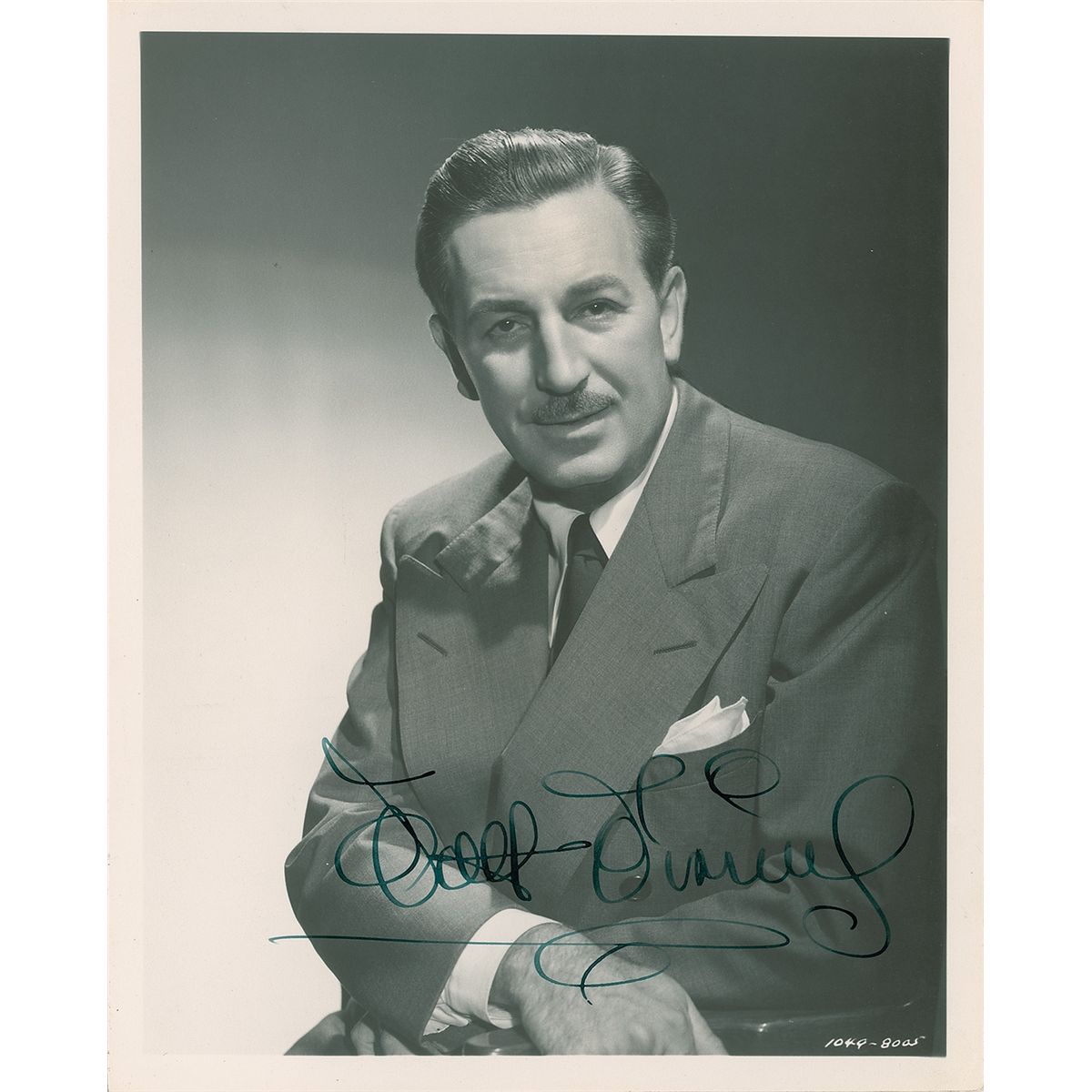 Gorgeous vintage matte-finish 8 x 10 portrait of Disney, boldly signed in fountain pen. In fine condition, with mild creasing to the lower right corner tip. One of the nicest Disney items we have offered.