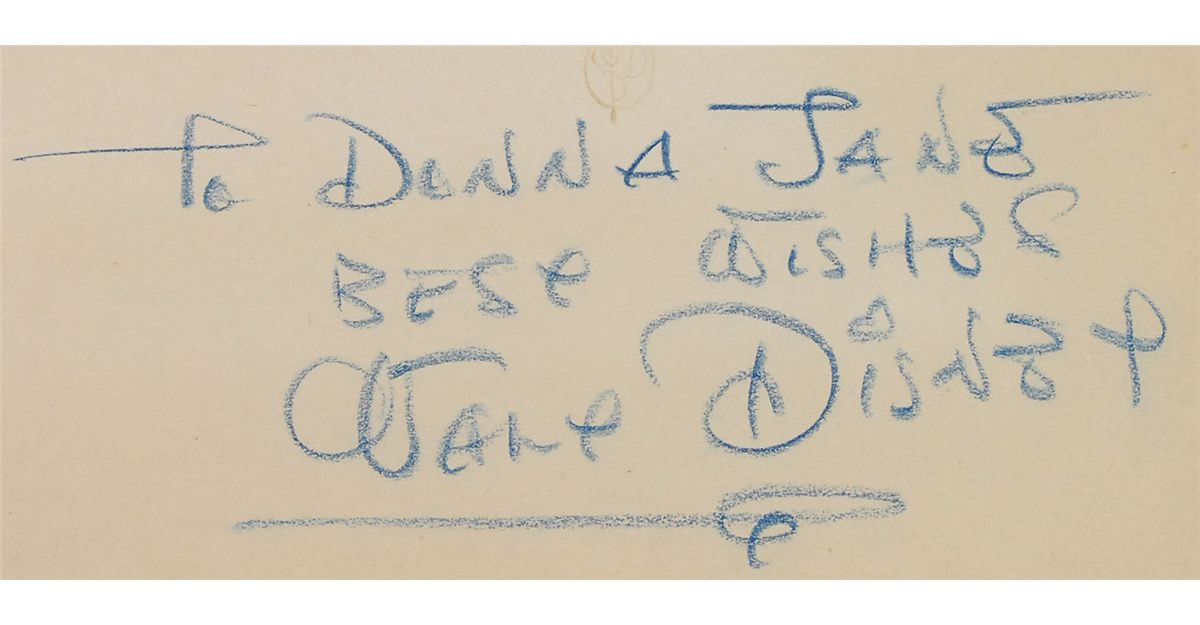 Each item in the catalog is described with a statement of opinion indicating its overall condition. The condition of the items we offer generally falls into the following range: good—very good—?ne—very ?ne. Treated as a scale of 1 to 4, good describes an item that has as many as several ?aws, which are described in detail; very fine describes an item whose condition and appearance may be regarded as ?awless and superior in every respect. Most of the items we offer are in ?ne condition, meaning that there are no serious ?aws. While we make every effort to describe ?aws that materially affect appearance and value, we generally do not specify minor or routine ?aws, such as (but not limited to) pencil or secretarial notations, mailing folds to letters, normal aging to paper, or tiny bends or creases from normal handling. We encourage prospective bidders to examine the image(s) of each item closely and to contact us with speci?c inquiries regarding condition.