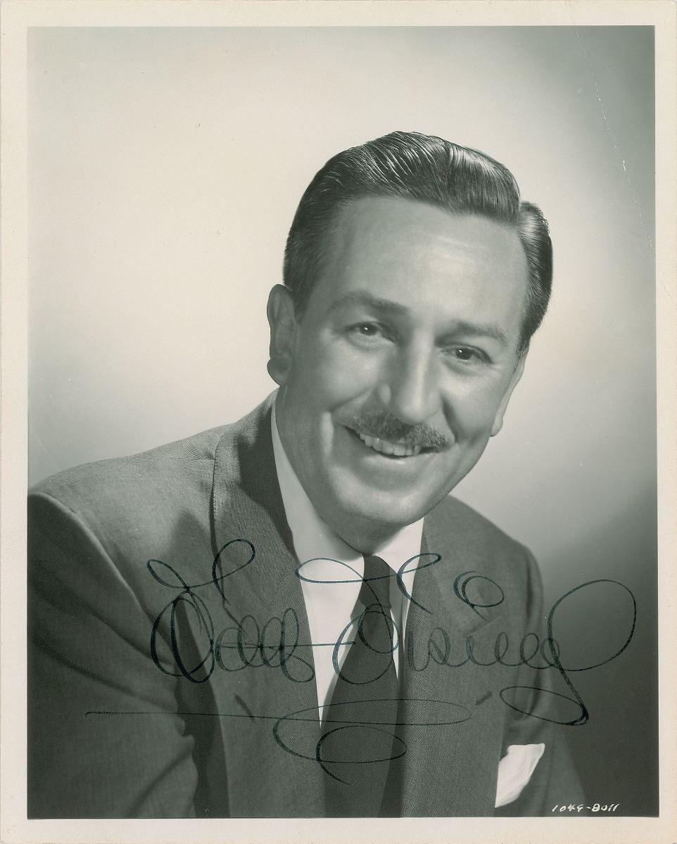 Wonderful vintage matte-finish 8 x 10 head-and-shoulders photo of Disney, prominently and attractively signed in fountain pen. In fine condition, with diagonal creases to the upper right corner. With its huge signature and clear image, this is a quintessential uninscribed photo of the man behind the mouse. Accompanied by a full letter of authenticity from PSA/DNA as well as a certificate of authenticity from noted Disney expert Phil Sears.