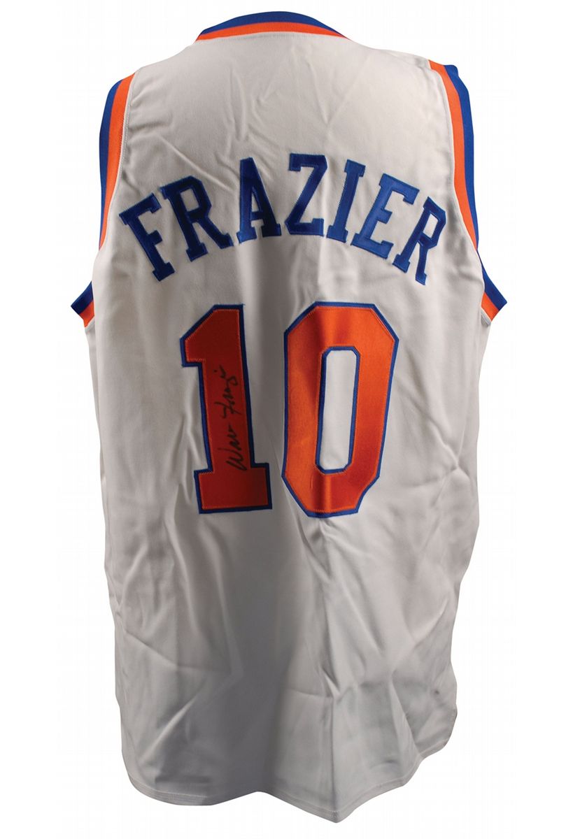 Replica New York Knicks basketball jersey, with sewn on letters and numbers, signed in black felt tip on the number on the back. In fine condition.