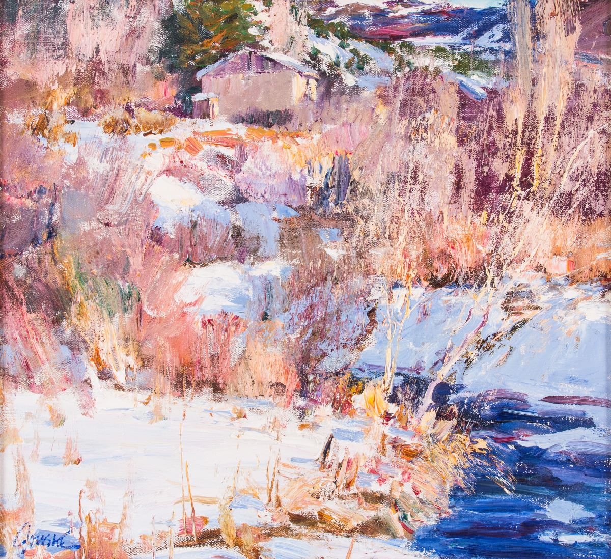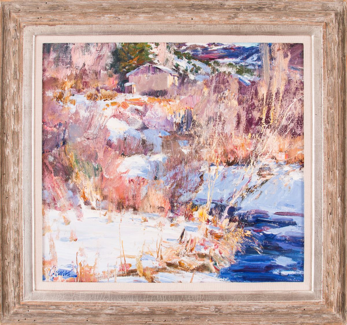 Walt Gonske (1942 - ). Rio del Pueblo. 24" x 22" oil on canvas. Signed lower left. Verso: Titled and signed.