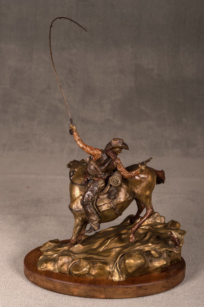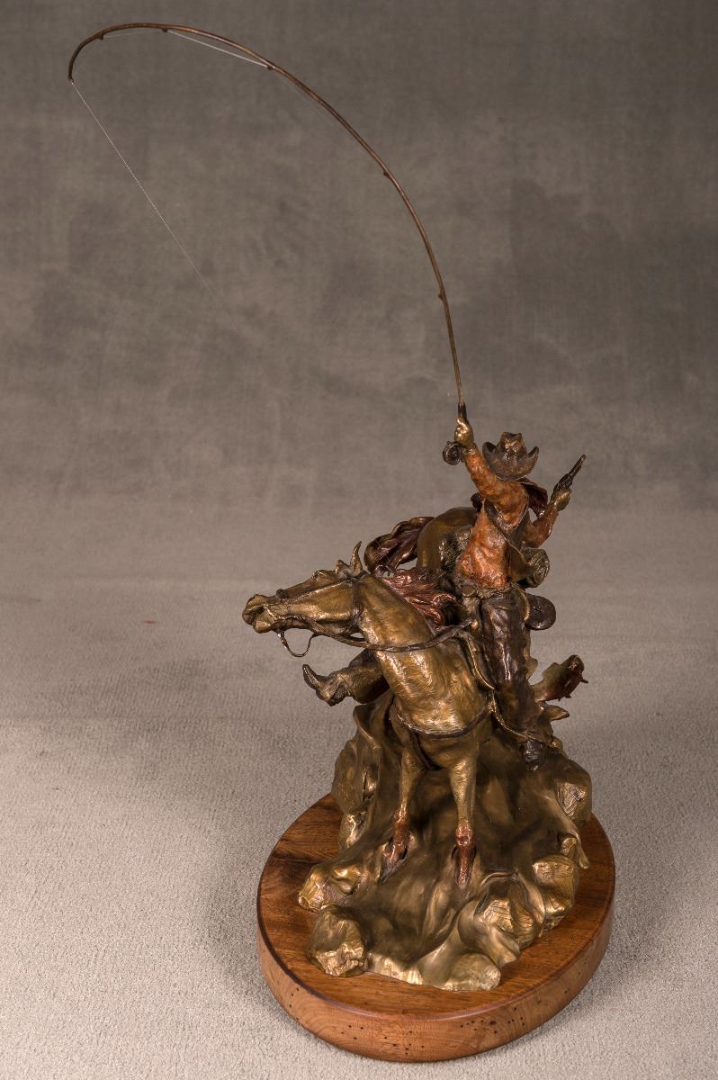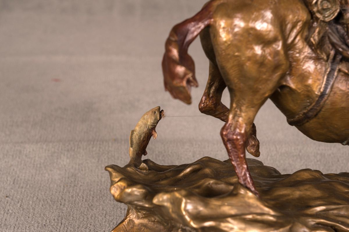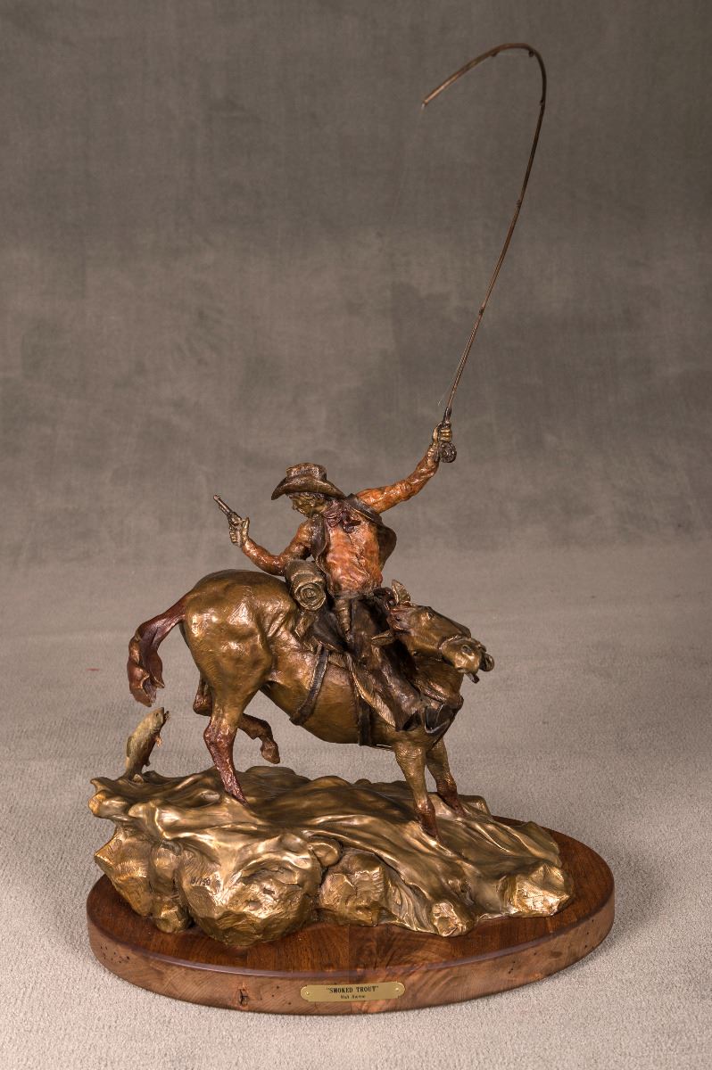Walt Horton (1953-2010). Smoked Trout. 25" x 22" 14" bronze on swivel base. Inscribed: Walt, 18/150.
