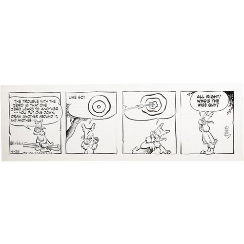 Howland Owl’s metaphysical meanderings make him a target for ridicule, in this dazzling daily from 1965. The image area measures 20" x 5.5", and the condition is Excellent.<BR><BR><b>Shipping:</b> Large Flat (<a target="_blank" href="http://www.heritageauctions.com/common/shipping.php">view shipping information</a>)