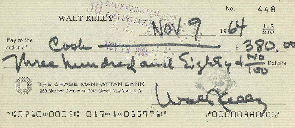 Walt Kelly signed check