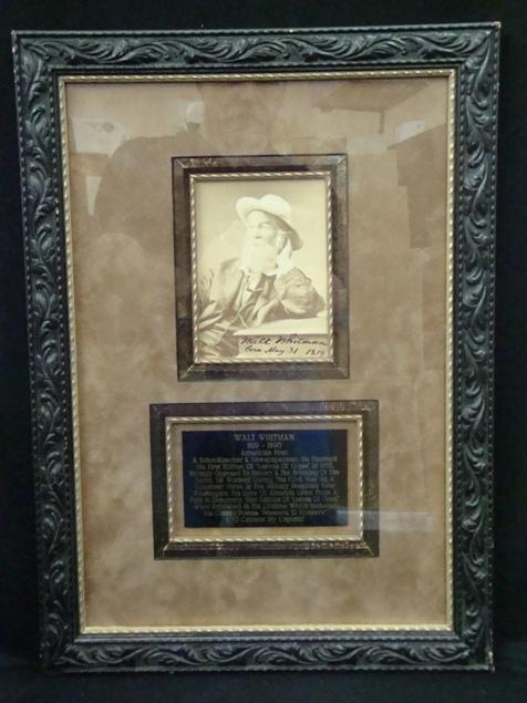 Excellent Walt Whitman autographed photo and a small tribute plaque, all preservation framed. Overall size is 19x14"