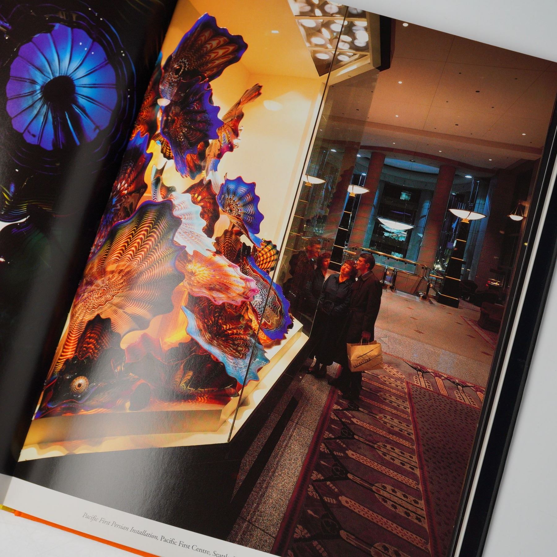 Hardcover exhibition monograph, published by Portland Press in association with the Museum of Arts and Sciences, Daytona Beach, Florida. This visually striking volume celebrates the vibrant and dynamic glass artistry of Dale Chihuly, featuring full-color plates that showcase his sculptural works in brilliant detail-from his signature Seaforms and Macchias to monumental Venetian installations. Includes essays, an exhibition schedule, and a chronological overview of Chihuly's career, with photographs documenting both individual pieces and large-scale public displays. The volume bears the artist's name "CHIHULY" embossed in red on the front cover and spine, a distinctive hallmark of the edition.
