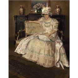 Walter Ernest Tittle (American, 1883-1966), “Woman in a Fancy Dress”, c. 1930; oil/canvas, 28” x 22”, signed. Tittle studied with Chase and Henri in New York. He exhibited at the Art Institute of Chicago, National Academy of Design, Library of Congress, and the Corcoran Gallery. His work is in numeorus public collections. He was also an author and illustrator.