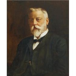 Walter Frederick Osborne RHA (1859-1903) PORTRAIT OF JAMES MARSHALL MURRAY signed upper left oil on canvas 76 by 64cm., 30 by 25in. James Marshall Murray JP, of Lowville in Merrion, Co. Dublin, was from 1860-1896 a partner in the firm of bankers and stockbrokers, Boyle Low and Murray of 35 College Green, and for the years 1878-1893 served as President of the Dublin Stock Exchange. He was also an active member of a local freemasons lodge, as indicated by a plaque on the frame which reads: “In memoriam/J. Marshall P Murray Obiit 24 Dec. 1896/Grand Secretary 1871-1878/Grand Treasurer 1886-1896". In the original gilt-wood frame with a Combridge’s of Dublin frame maker’s label on reverse. Another version of this work, showing the sitter in three-quarter length, seated in the President’s chair of the then Dublin Stock Exchange, with a paper in his hand, exists in the Irish Stock Exchange, Dublin. With thanks to James Ferguson, James Lyons and David Scott for their help in cataloguing this lot.