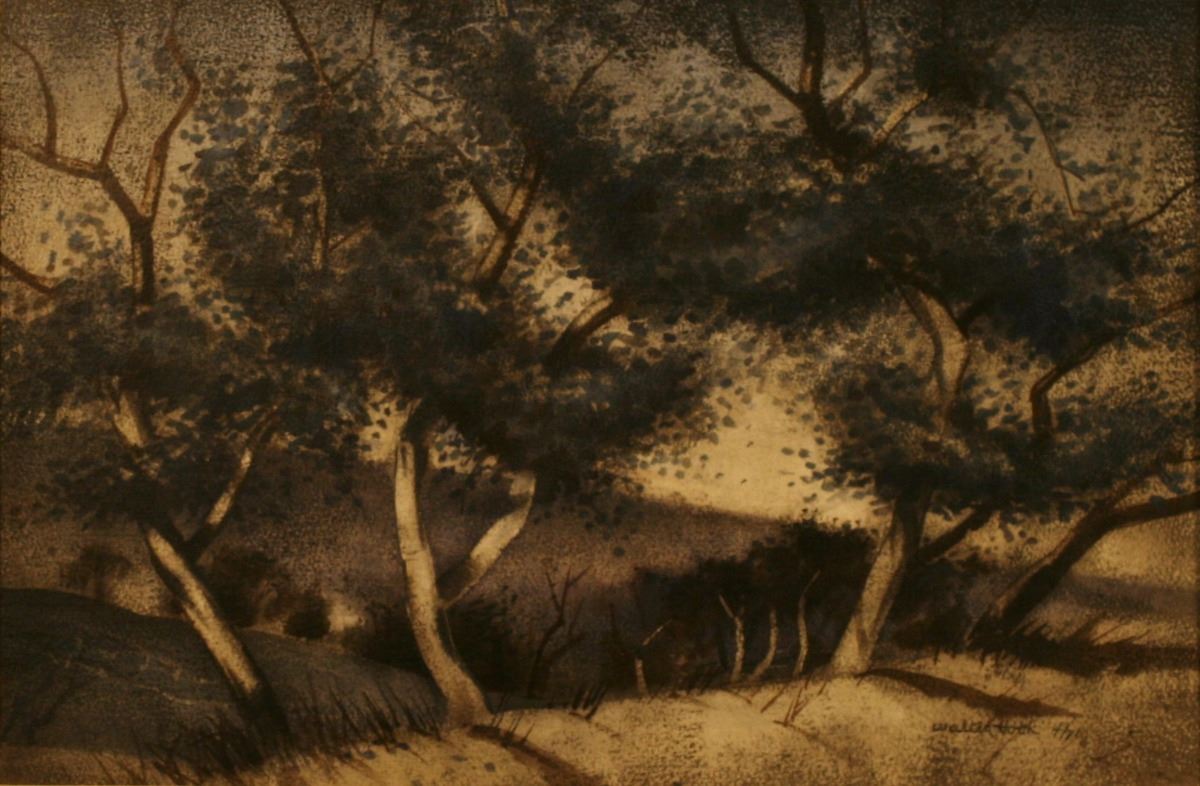 Landscape, "Six Trees", 13" x 20" sight size of artwork, signed lower right, 4/'71 (April,1971) -562414-B