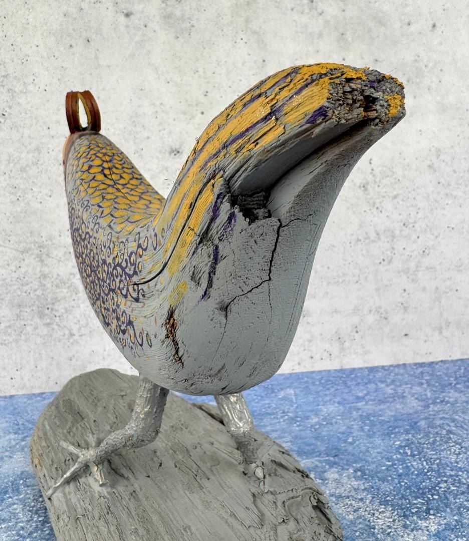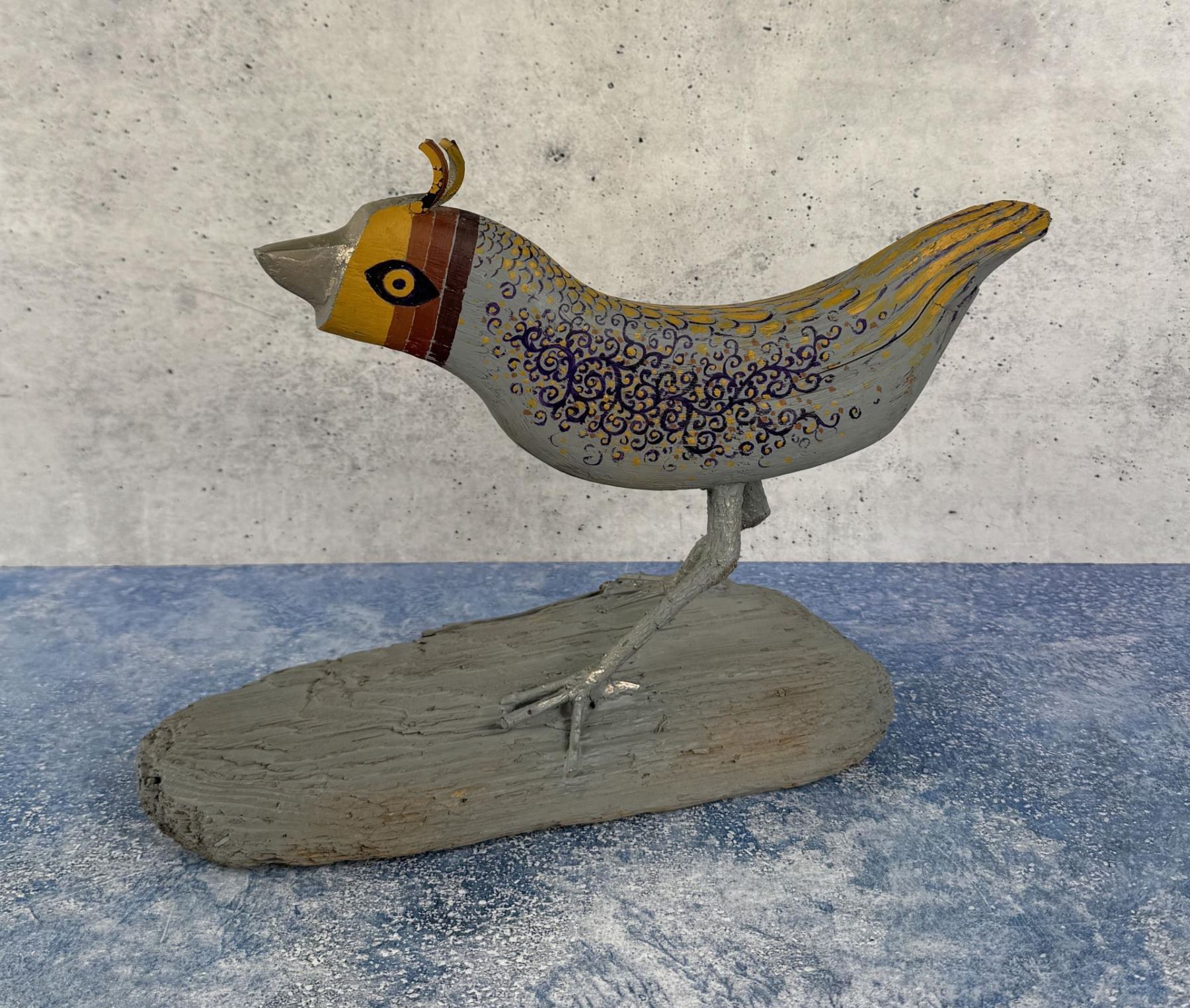 Title is Lawn Bird. 10 1/2" by 15 3/8" by 5 5/8". Provenance: The Estate of Walter Hook. Walter Hook (1919 - 1989) was active/lived in Montana. Walter Hook is known for Post-war surrealist painting, sculpture. Walter Hook, painter and printmaker, was a Montana native. He received his Masters Degree in Art from the University of New Mexico in 1950, and was hired as chair of the University of Montana Art Department. Walter Hook received some 90 awards from juried exhibitions and had over 80 one- man shows. In 1972 he was elected an Associate of the National Academy of Design, the nation's oldest artist's honorary organization. His mediums painting, sculpture, mixed media, printmaking. His style is post-war surrealism.