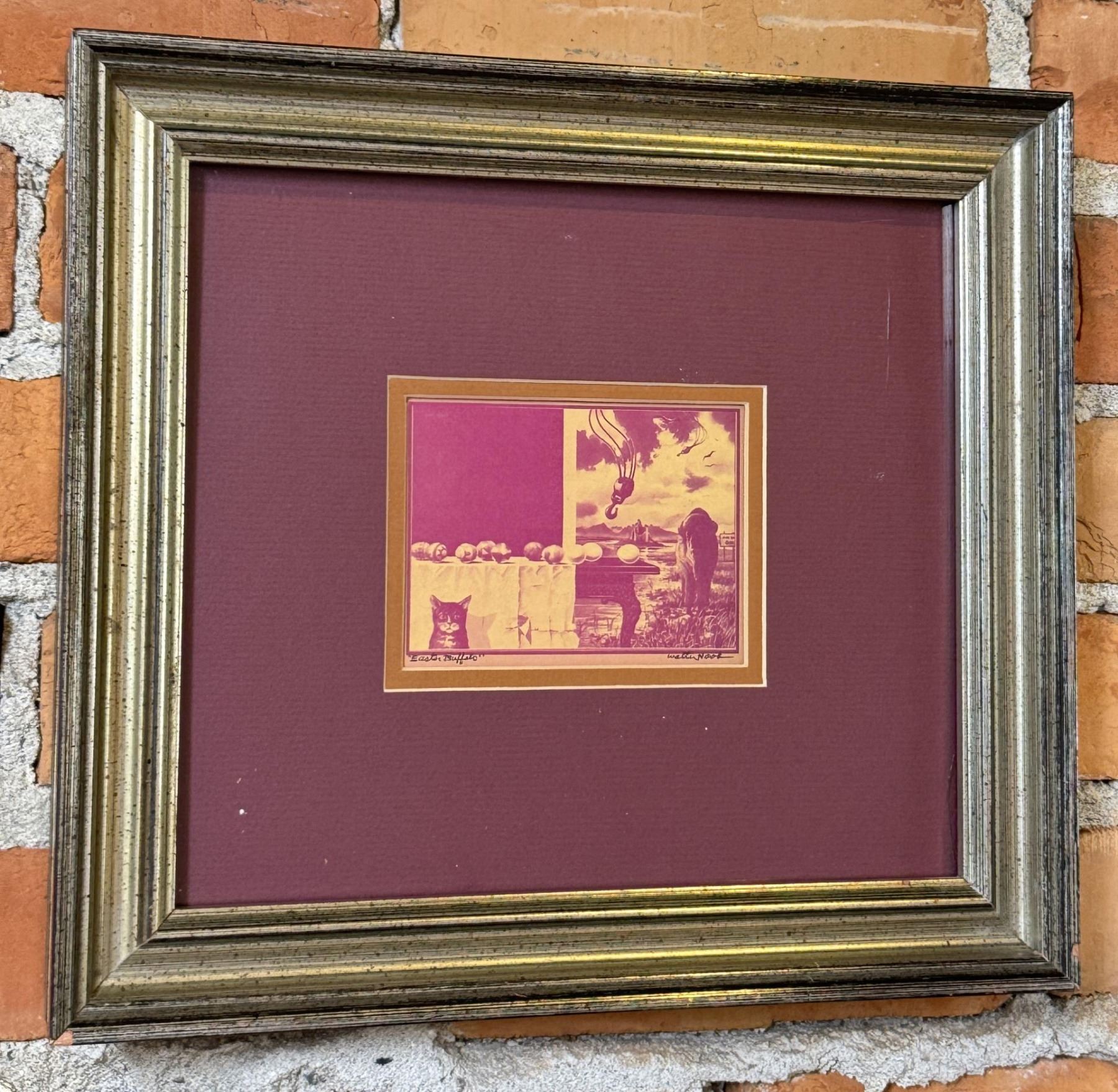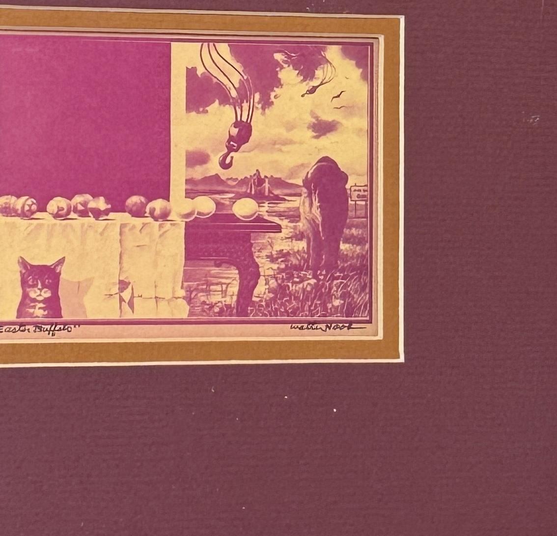 Mono Color Printing Proof for the Easter Buffalo. 11 5/8" by 12 3/4" framed.