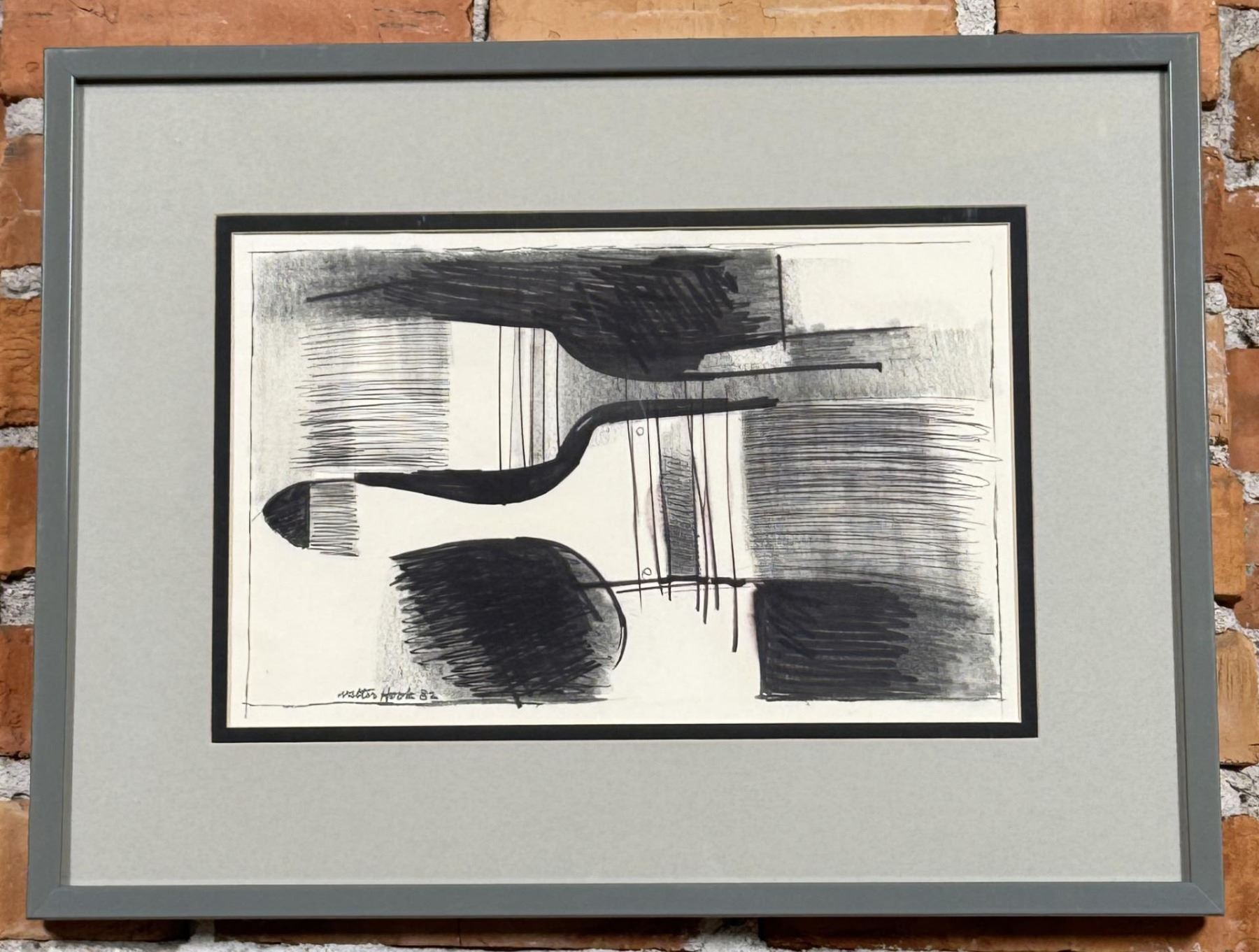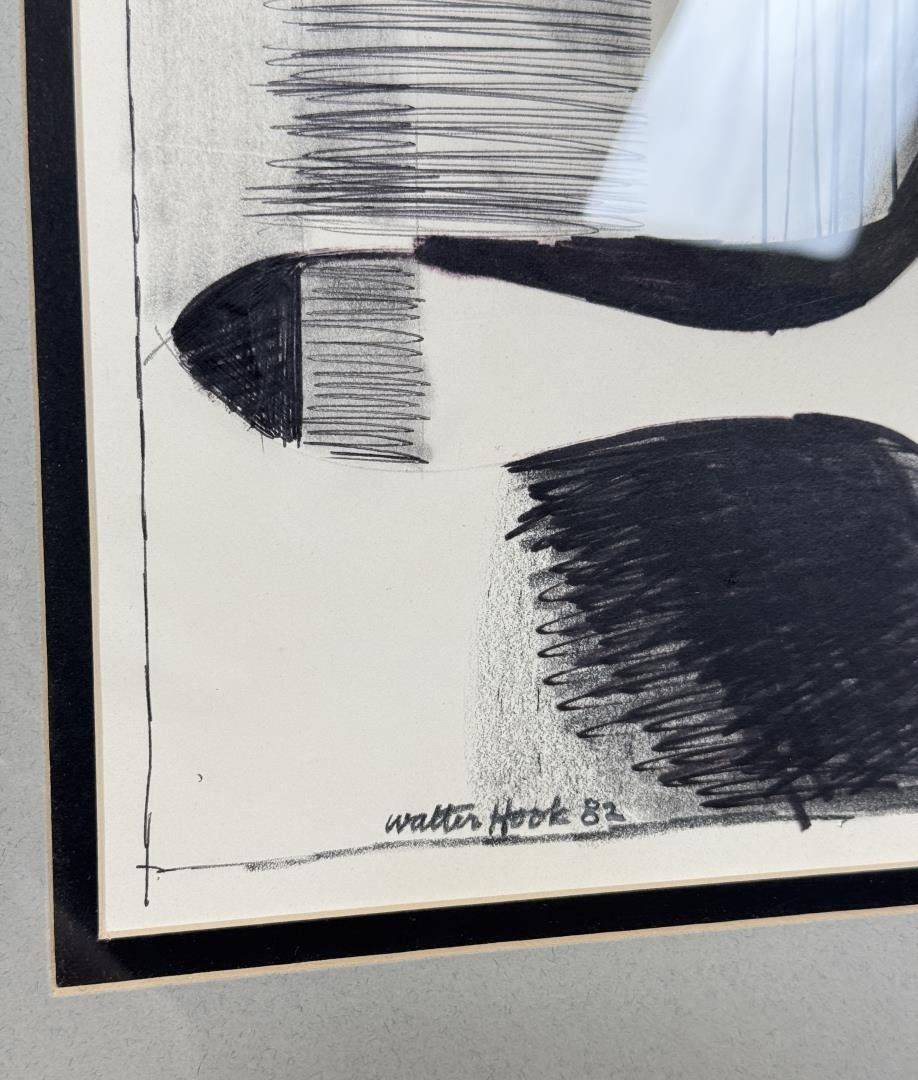 Title is Paint Brush Drawing. Graphite on Paper. 14 3/4" by 19 5/8" framed. Provenance: The Estate of Walter Hook Walter Hook (1919 - 1989) was active/lived in Montana. Walter Hook is known for Post-war surrealist painting, sculpture. Walter Hook, painter and printmaker, was a Montana native. He received his Masters Degree in Art from the University of New Mexico in 1950, and was hired as chair of the University of Montana Art Department. Walter Hook received some 90 awards from juried exhibitions and had over 80 one- man shows. In 1972 he was elected an Associate of the National Academy of Design, the nation's oldest artist's honorary organization. His mediums painting, sculpture, mixed media, printmaking. His style is post-war surrealism.