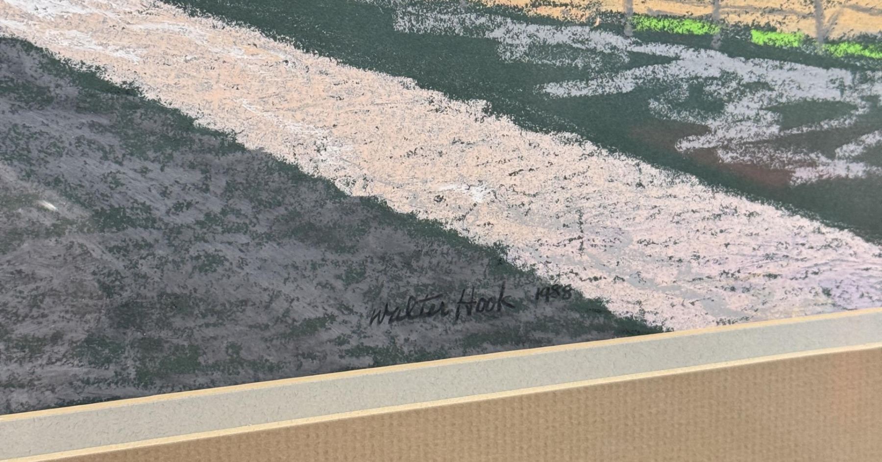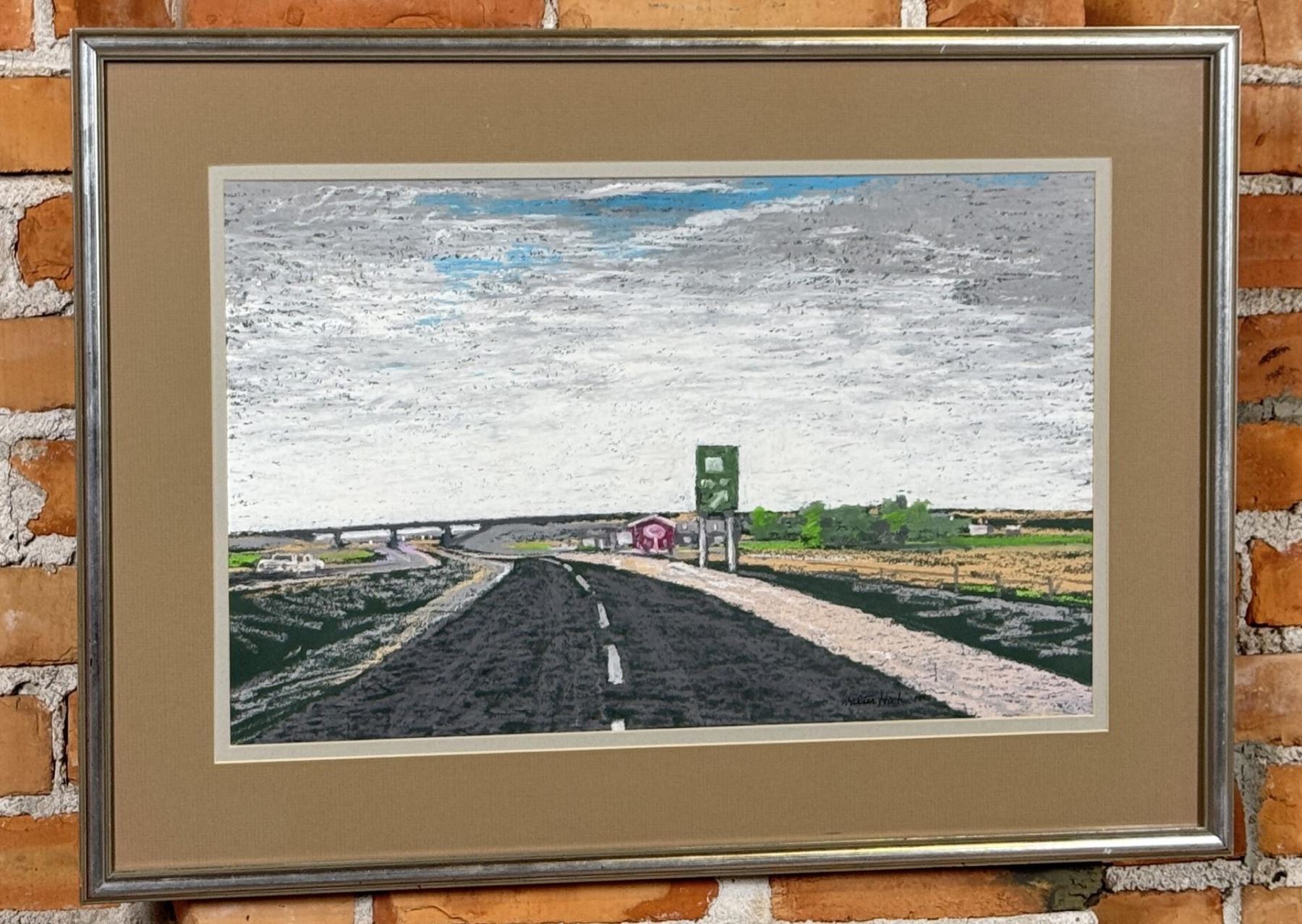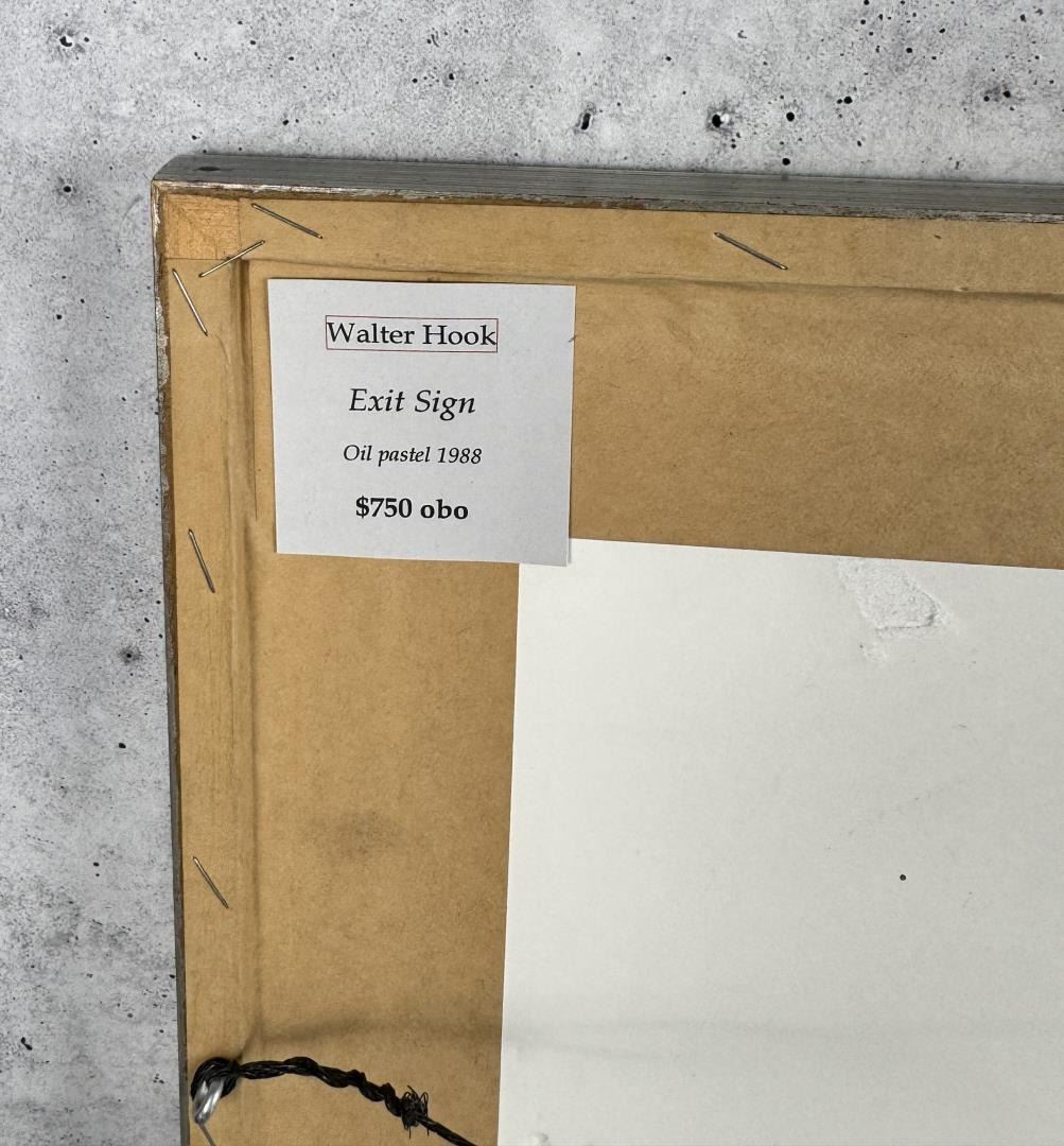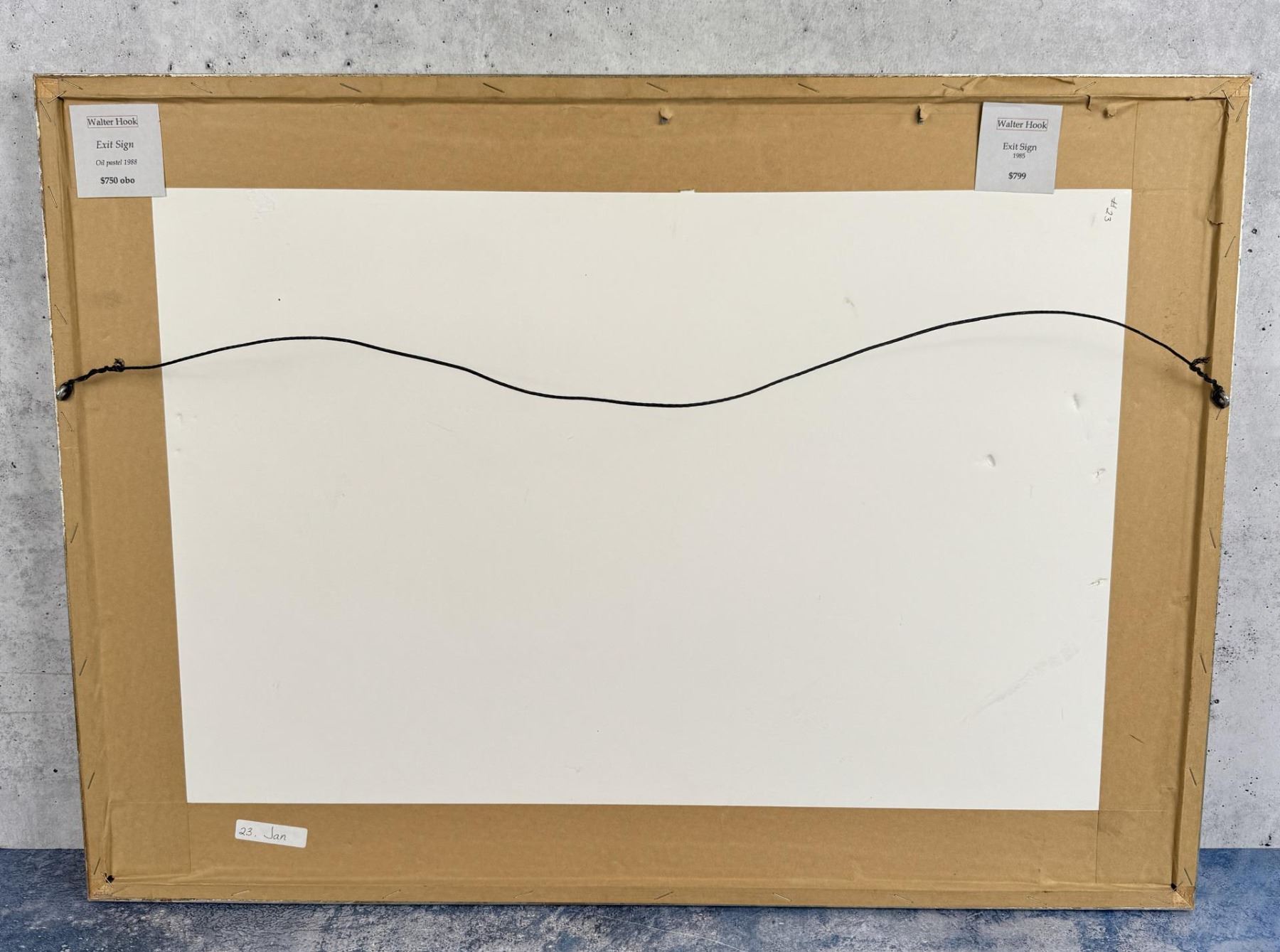 Title is Exit Sign. Pastel on Paper. 19 5/8" by 27 1/8" framed. Provenance: The Estate of Walter Hook Walter Hook (1919 - 1989) was active/lived in Montana. Walter Hook is known for Post-war surrealist painting, sculpture. Walter Hook, painter and printmaker, was a Montana native. He received his Masters Degree in Art from the University of New Mexico in 1950, and was hired as chair of the University of Montana Art Department. Walter Hook received some 90 awards from juried exhibitions and had over 80 one- man shows. In 1972 he was elected an Associate of the National Academy of Design, the nation's oldest artist's honorary organization. His mediums painting, sculpture, mixed media, printmaking. His style is post-war surrealism.