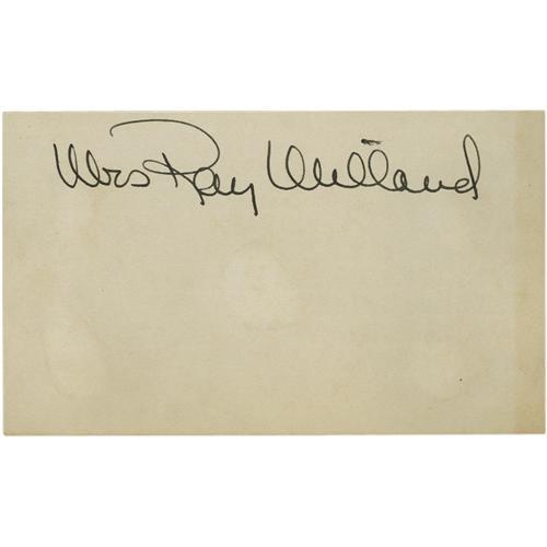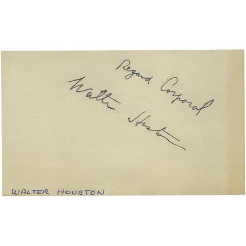 <B>Walter Huston/Mrs. Ray Milland Autographs.</B></I> A 3" x 5" notecard inscribed and signed by Walter Houston in black ink, mounted on an album page beneath a newsprint photo of him. On the reverse is a similar card signed "Mrs. Ray Milland" by the actor's wife, Muriel Webber, in black ink, mounted below a magazine photo of her. In overall Very Fine condition with some tanning along the edges of the notecards.<BR><BR><b>Shipping:</b> Flat Material, Small (<a target="_blank" href="http://www.heritageauctions.com/common/shipping.php">view shipping information</a>)
