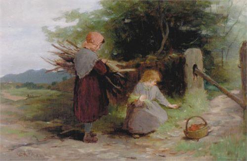 THE TWO SISTERS - Oil - on board - <Br>11.75 ins. X 18 ins.