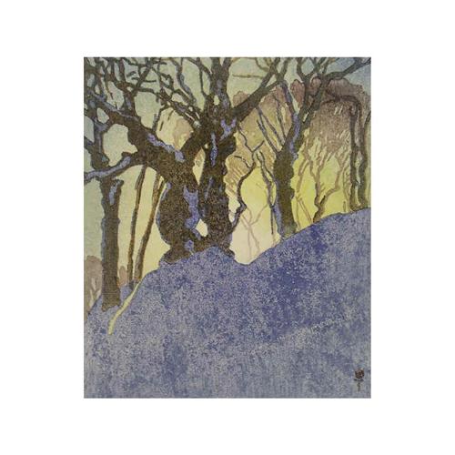 Canadian ASA, CPE, CSPWC, MSA, RCA [1884-1963] SNOW BANK; 1923 colour woodcut on paper 4.5 x 3.75 in. (11.2 x 9.5 cm) signed; monogrammed in the block Note: Produced as the Christmas greeting of 1923. Includes the original printed card. Illustrated p. 216 "Walter J. Phillips: The Complete Graphic Works" (Boulet).