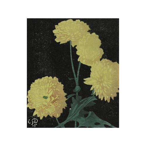 Canadian ASA, CPE, CSPWC, MSA, RCA [1884-1963] POM POMS; 1928 colour woodcut on paper 3.75 x 3.25 in. (9.7 x 8.3 cm) signed; monogrammed in the block Note: Produced as the Christmas greeting of 1928. Includes the original printed card. Illustrated p. 316 "Walter J. Phillips: The Complete Graphic Works" (Boulet) and p. 109 "The Tranquility and the Turbulence" (Boulet).