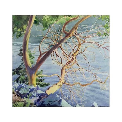 Canadian ASA, CPE, CSPWC, MSA, RCA [1884-1963] ARBUTUS TREE; 1954 watercolour on paper 16 x 17.25 in. (40.6 x 43.8 cm) signed & dated