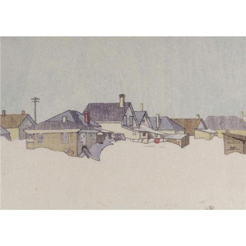 Canadian ASA, CPE, CSPWC, MSA, RCA [1884-1963] A WINNIPEG STREET, SNOW BOUND; 1927 colour woodcut on paper; ed. #29/250 4.25 x 6.25 in. (10.9 x 16 cm) signed & editioned; monogrammed in the block Note: From "Ten Canadian Colour Prints" (#7). Illustrated p. 277 "Walter J. Phillips: The Complete Graphic Works" (Boulet).