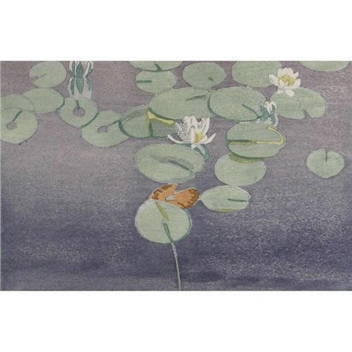 Canadian ASA, CPE, CSPWC, MSA, RCA [1884-1963] WATER LILIES; 1927 colour woodcut on paper; ed. #29/250 4.25 x 6.5 in. (10.9 x 16.2 cm) signed & editioned Note: From "Ten Canadian Colour Prints" (#8). Illustrated p. 278 "Walter J. Phillips: The Complete Graphic Works" (Boulet).