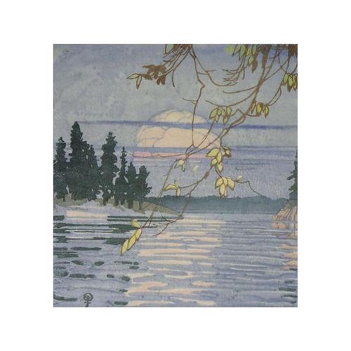 Canadian ASA, CPE, CSPWC, MSA, RCA [1884-1963] THE GOLDEN HOUR; 1918 colour woodcut on paper; ed. of 50 6.75 x 6.25 in. (17 x 16 cm) signed; monogrammed in the block Note: Illustrated p. 124 "Walter J. Phillips: The Complete Graphic Works" (Boulet).