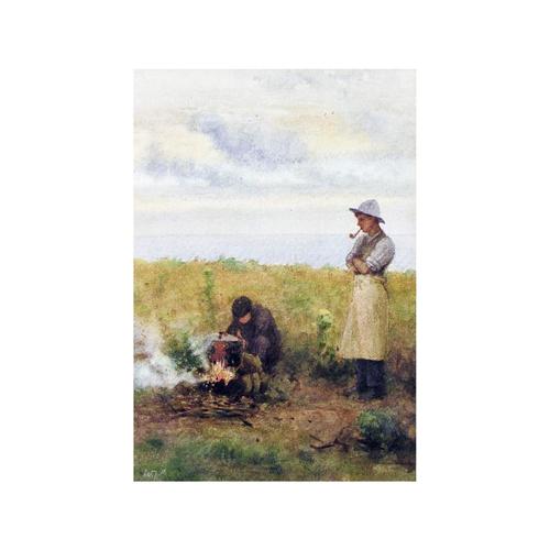Canadian ASA, CPE, CSPWC, MSA, RCA [1884-1963] TENDING THE FIRE watercolour on paper 9.5 x 6.5 in. (24.1 x 16.5 cm) initialed