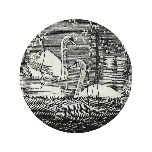 Canadian ASA, CPE, CSPWC, MSA, RCA [1884-1963] SWANS; 1932 wood engraving on paper; second state 2.25 in. (5.6 cm) diameter signed Note: Used as the Christmas greeting of 1932. Includes the original printed card with a personal inscription. Illustrated p. 448 "Walter J. Phillips: The Complete Graphic Works" (Boulet) and p. 118 "The Tranquility and the Turbulence" (Boulet).