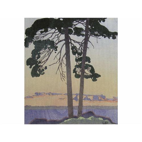 Canadian ASA, CPE, CSPWC, MSA, RCA [1884-1963] A MUSKOKA SUNSET; 1927 colour woodcut on paper; ed. #29/250 7.5 x 6.75 in. (19.2 x 17 cm) signed & editioned; monogrammed in the block Note: From "Ten Canadian Colour Prints"(#2). Illustrated p. 272 "Walter J. Phillips: The Complete Graphic Works" (Boulet).
