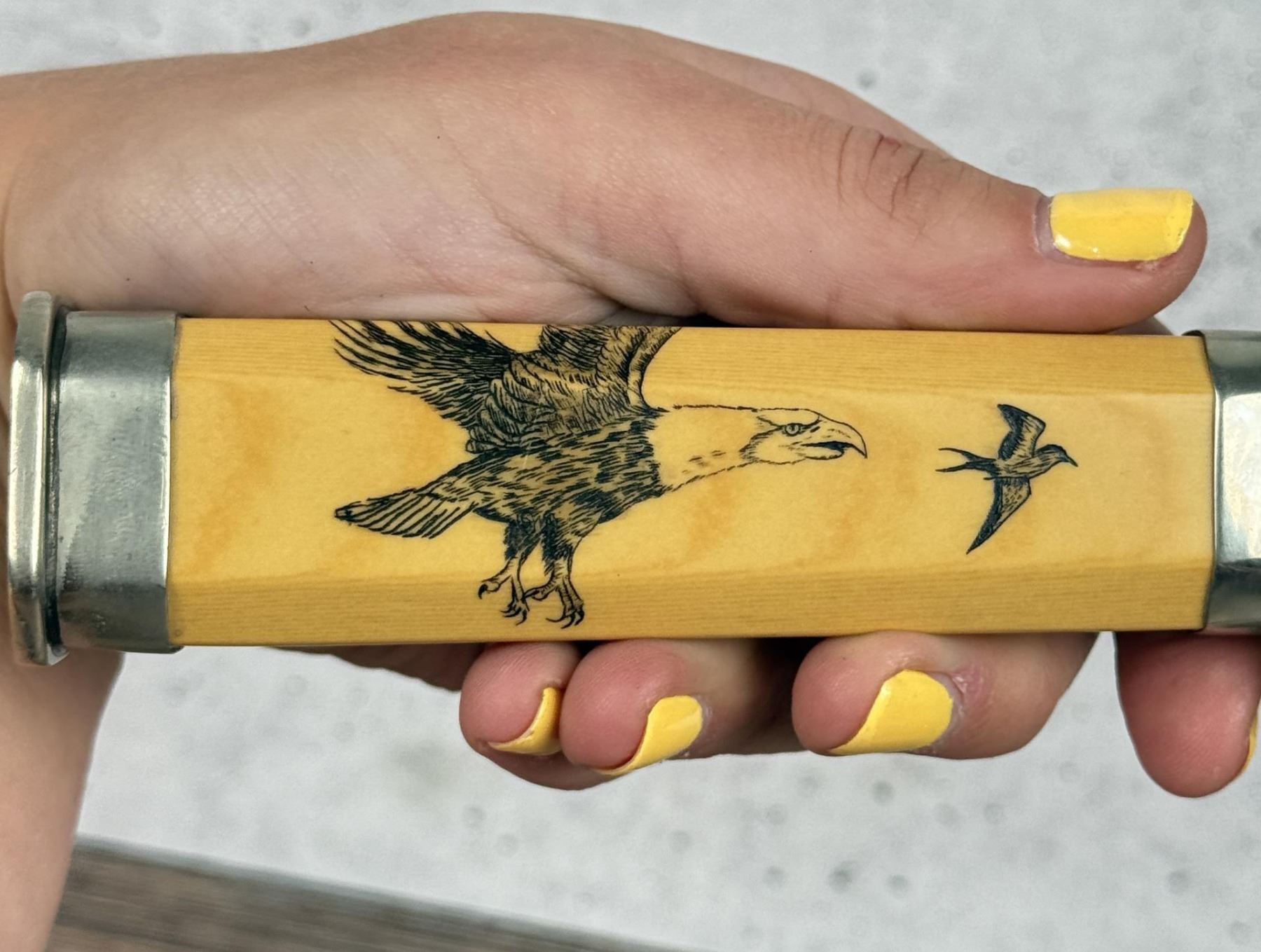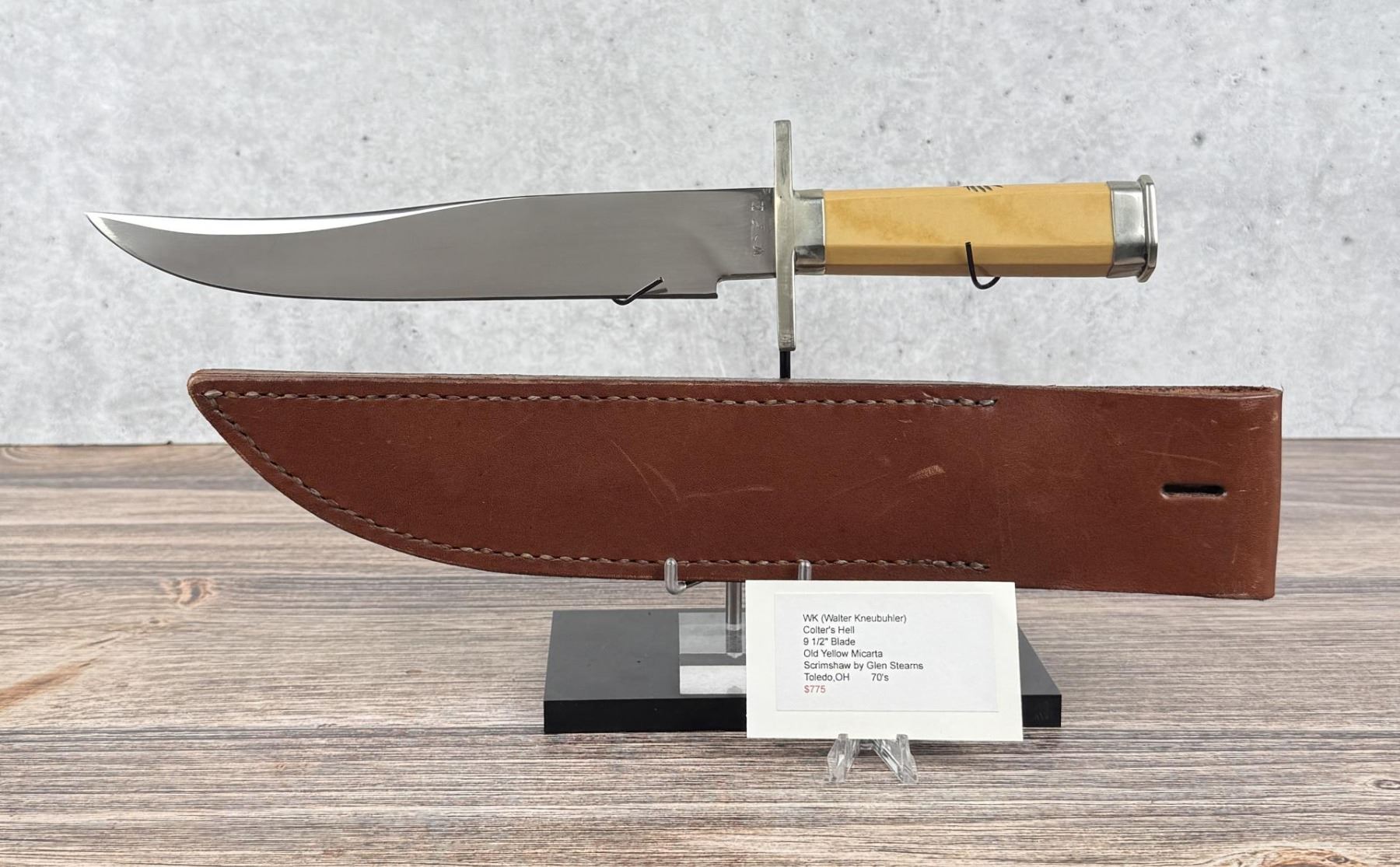 Handle Scrimshaw by Glen Stearns. Never used or carried. 14 1/4" long.