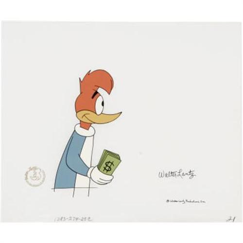 <B>Walter Lantz Animation Production Cel, Animation Production Drawing, and Limited Edition Print, Group of 19 (Lantz Productions, 1970-92).</B></I> This selection includes four original hand-inked and hand-painted production cels featuring Woody Woodpecker, and one cel of Chilly Willy, along with two clean-up drawings, from the shorts "Flim Flam Fountain," "Chili Con Corny," and "The Genie With the Light Touch." Also includes four additional original animation production drawings of Woody and Chilly. The prints included are "Chillys Fishing Hole" (#200/200), "Moneybags Woody" (#8/200), "Fish Locker" (#62/200), and "Golfing Fool" (#47/100), all signed by Lantz. Most items include a certificate of authenticity. Also includes three payroll checks signed by Walter Lantz.<BR><BR><b>Shipping:</b> Flat Material, Small (<a target="_blank" href="http://www.heritageauctions.com/common/shipping.php">view shipping information</a>)