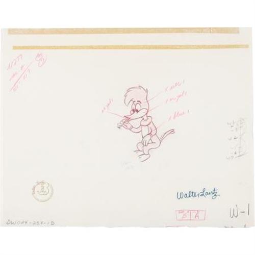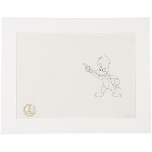 <B>Walter Lantz Animation Production Cel, Animation Production Drawing, and Limited Edition Print, Group of 12 (Lantz Productions, 1970-92).</B></I> Woody Woodpecker lovers will appreciate this set which includes an original hand-inked and hand-painted production cel and background and four original drawings featuring Walter Lantzs popular red-head. The prints included are "Moneybags Woody" (#181/200), "Fly Ball" (#125/200), "Rooftop Woody Woodpecker" (#179/200), and "Woody Gets a Hit" (#157/200, signed by Reggie Jackson), all signed by Lantz. Most items include a certificate of authenticity. Also includes three payroll checks signed by Walter Lantz.<BR><BR><b>Shipping:</b> Flat Material, Small (<a target="_blank" href="http://www.heritageauctions.com/common/shipping.php">view shipping information</a>)
