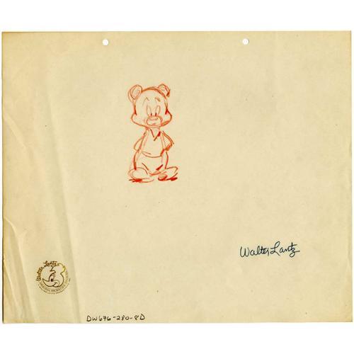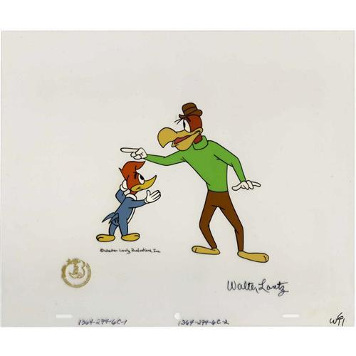<B>Walter Lantz Animation Production Material and Limited Edition Print Group of 12 (Lantz Productions, 1947-92).</B></I> This selection includes two original hand-inked and hand-painted production cels featuring Woody Woodpecker and Buzz Buzzard, along with their clean-up drawings from the short, "Flim Flam Fountain." Also includes a hand-inked and hand-painted cel of a caveman, with an original hand-painted background. Two of these cels are signed by Walter Lantz. Also includes two original animation production drawings, one of Woody, and one from the short, "Musical Moments From Chopin," (1947, signed by Lantz). The prints included are "Fish Locker" (#186/200), "Fly Ball" (#126/200), "Termites From Mars" (#117/200), and "Chilly’s Fishing Hole" (#191/200), all signed by Lantz. Most items include a certificate of authenticity. Also includes three payroll checks signed by Walter Lantz. <BR><BR><b>Shipping:</b> Flat Material, Small (<a target="_blank" href="http://www.heritageauctions.com/common/shipping.php">view shipping information</a>)