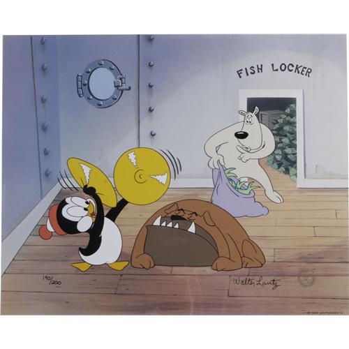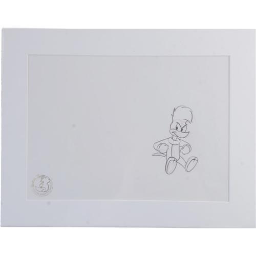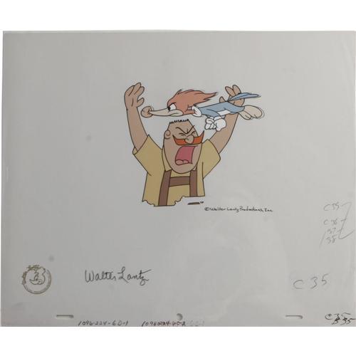 <B>Walter Lantz Animation Production Material and Limited Edition Print, Group of 6 (Lantz Productions, 1970-91).</B></I> This selection includes two original hand-inked and hand-painted production cels featuring Woody Woodpecker, and their corresponding clean-up drawings. Also includes three original production drawings of Woody, one signed by Lantz. The prints included are "Moneybags Woody" (#182/200), and "Fish Locker" (#190/200). Most items include a certificate of authenticity. Also includes two payroll checks signed by Walter Lantz.<BR><BR><b>Shipping:</b> Flat Material, Small (<a target="_blank" href="http://www.heritageauctions.com/common/shipping.php">view shipping information</a>)