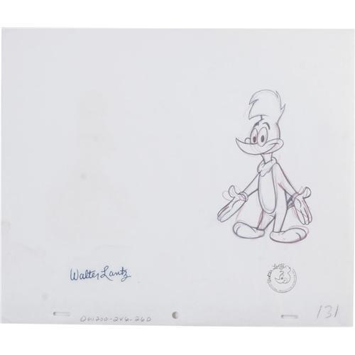 <B>Walter Lantz Animation Production Material and Limited Edition Print, Group of 8 (Lantz Productions, 1970-92).</B></I> This selection includes two original hand-inked and hand-painted production cels featuring Chilly Willy and a baby wooly mammoth, along with their clean-up drawings from the short, "Chilly’s Ice Folly," released in 1970. Also includes four original animation production drawings of Woody Woodpecker, two signed by Lantz. The prints included are "Moneybags Woody" (#174/200), "Termites From Mars" (#124/200), and "Rooftop Woody Woodpecker" (#182/200). All items include a certificate of authenticity. Also includes three payroll checks signed by Walter Lantz. <BR><BR><b>Shipping:</b> Flat Material, Small (<a target="_blank" href="http://www.heritageauctions.com/common/shipping.php">view shipping information</a>)